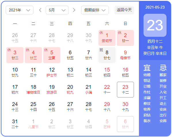 您好!为了使您尽早了解曼特博五一放假安排,现将曼特博五一节放假具体安排告知如下: