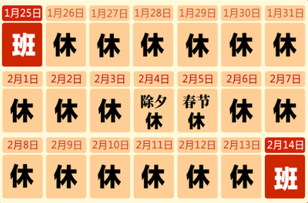 又是一年新来到!惜别2018,迎接充满希望、机遇和挑战的2019年。正值中国的传统节日春节来临之际,在此向广大客户朋友们拜个早年。预祝大家新春愉快!财源广进!为了欢庆传统的新春佳节,根据国家规定和我司的具体情况,经研究决定,现将我司的的春节安排通知如下: